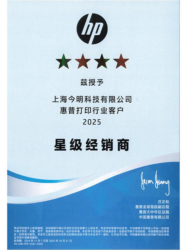 • 2025年惠普打印機星級經銷商